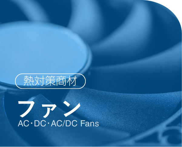 ファンは、空気の流れで熱を逃がす動力部品です。ACファン、DCファン、AC/DCファンを取り扱っています。