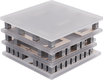 また、多段構成により、設置面積は最小2.0 x 4.0 mm、高さ(厚み)は下記まで小さくすることが可能です。